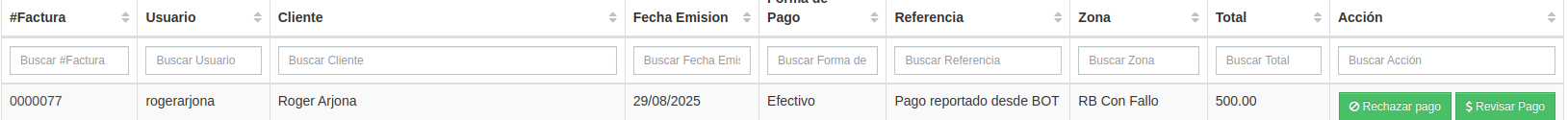 El comprobante aparecerá en WispHub en el apartado de Reporte de pagos, donde podrá revisarlo y aceptarlo o rechazarlo.