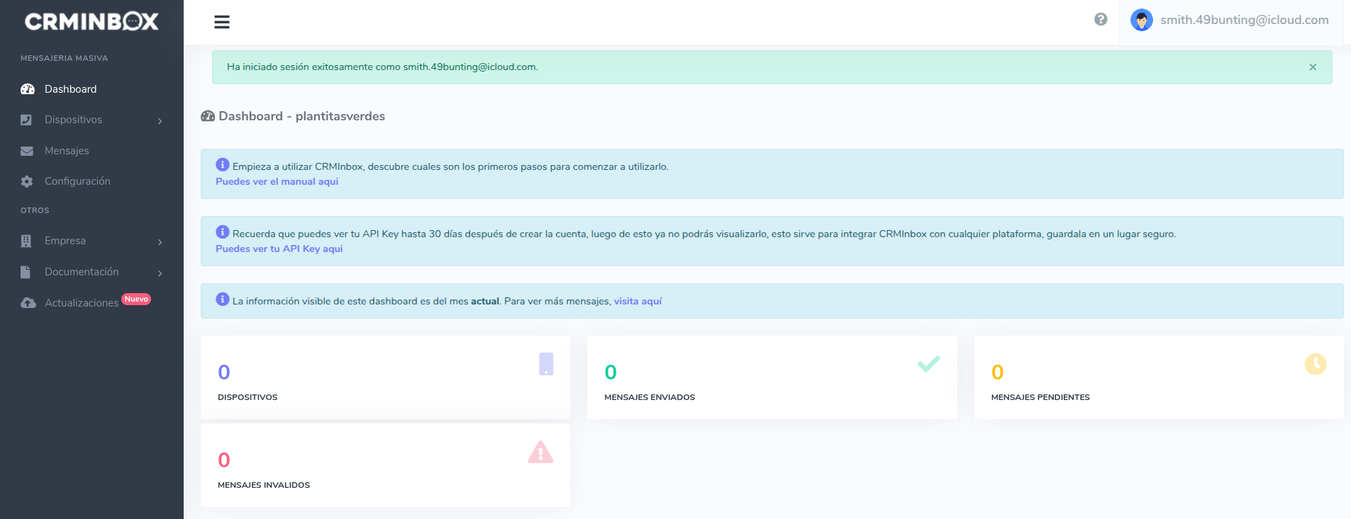 ¡Felicitaciones! Una vez que hayas iniciado sesión exitosamente, podrás visualizar tu dashboard personal de CRMInbox. Desde aquí podrás: