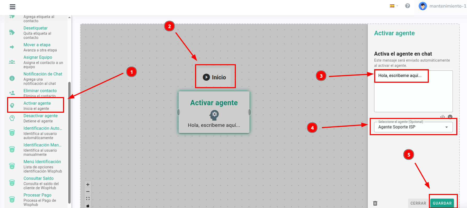 1.- Nombre del agente: Ingresa un nombre descriptivo (ejemplo: "Agente Soporte ISP").