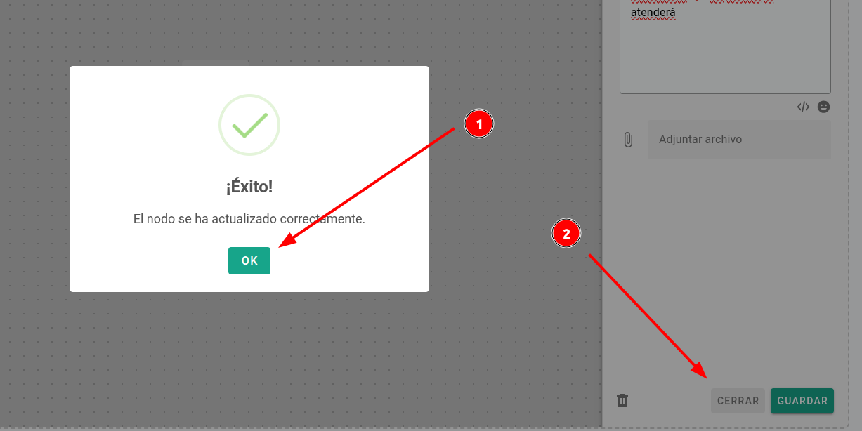 1.- Haz clic en "OK" para confirmar el mensaje de éxito.