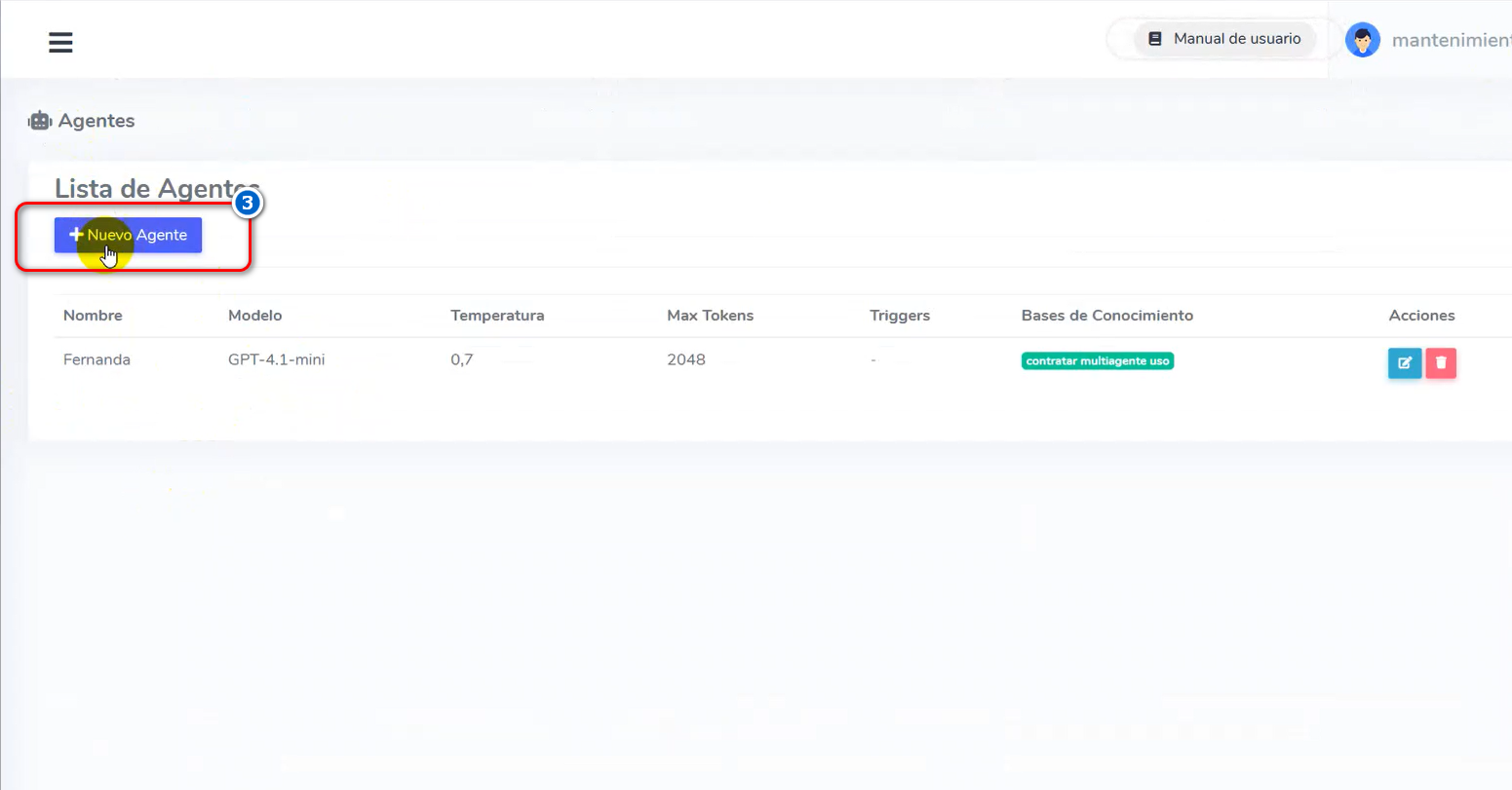 Nota: Crear una base desde este módulo no la asigna automáticamente a ningún agente. Podrás vincularla cuando crees o edites un agente.