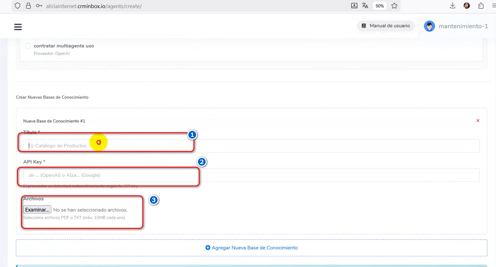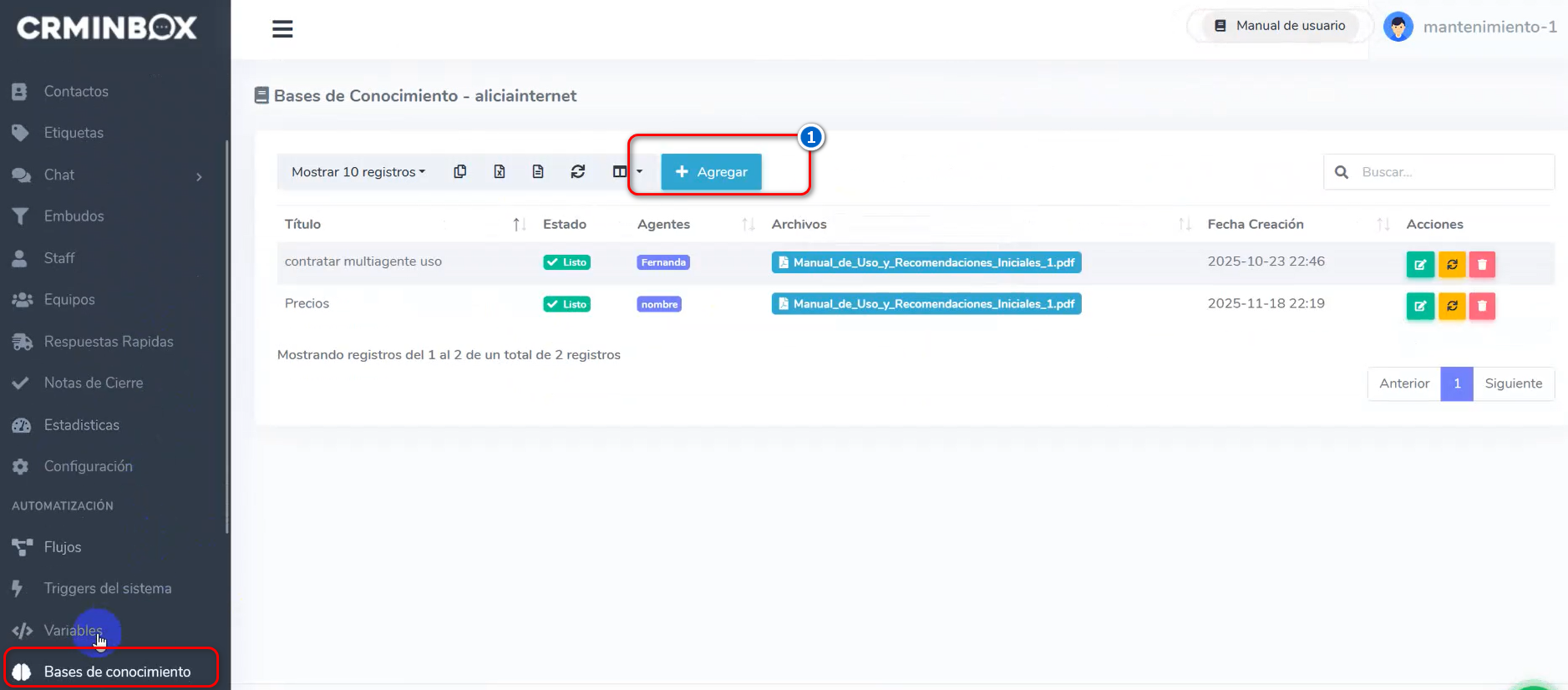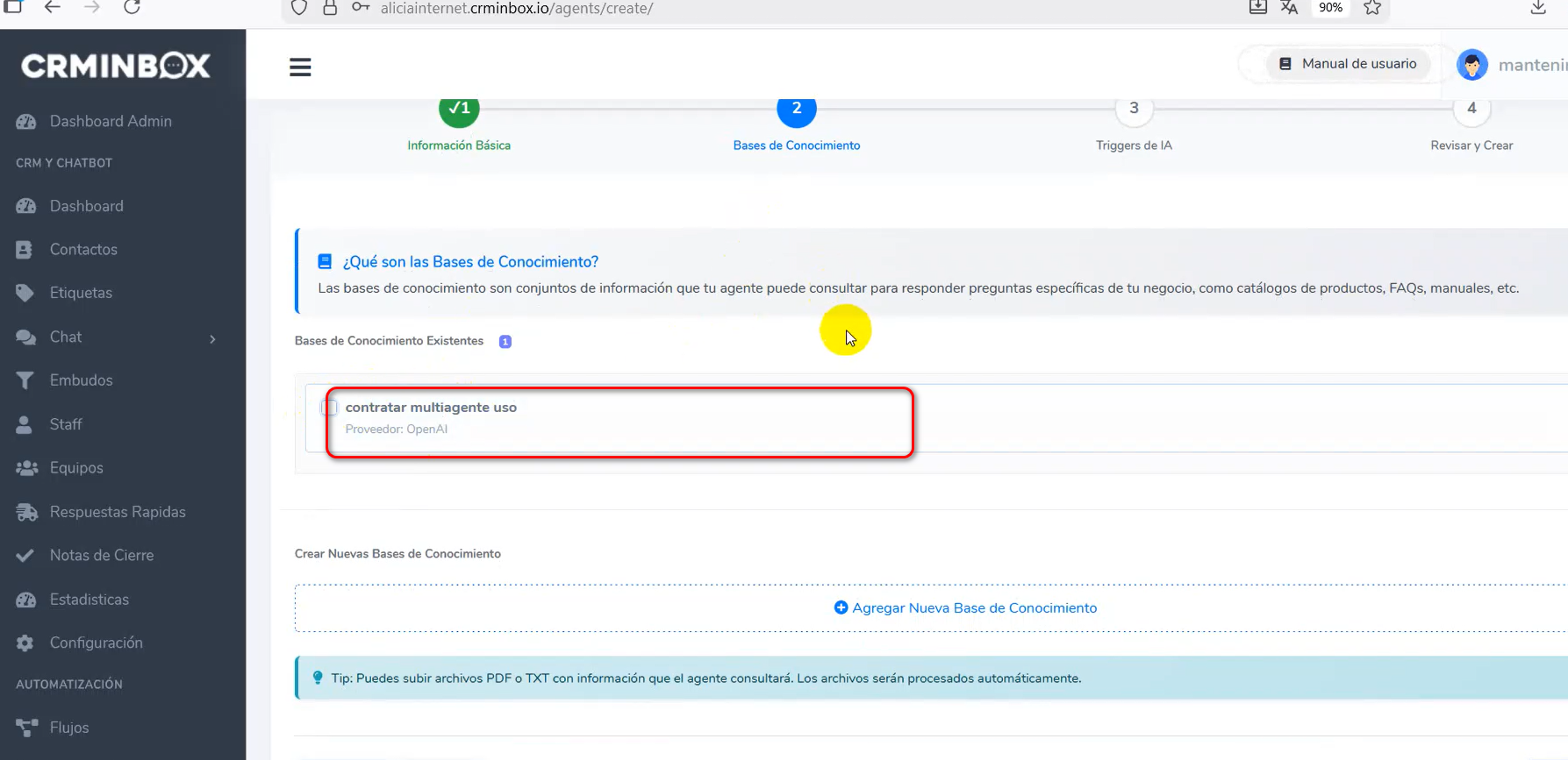 Crear Bases de Conocimiento y Asignarlas a un Agente en CRMInbox