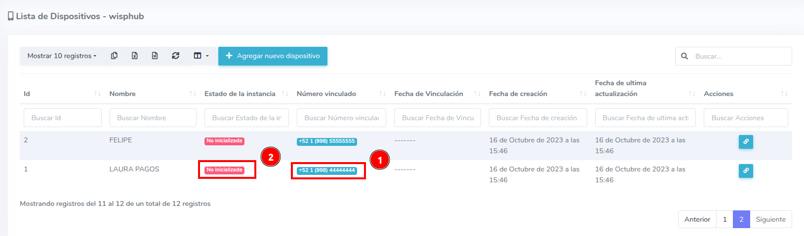 Busca tu dispositivo con tu número de teléfono en la lista. Si está desvinculado, verás:
