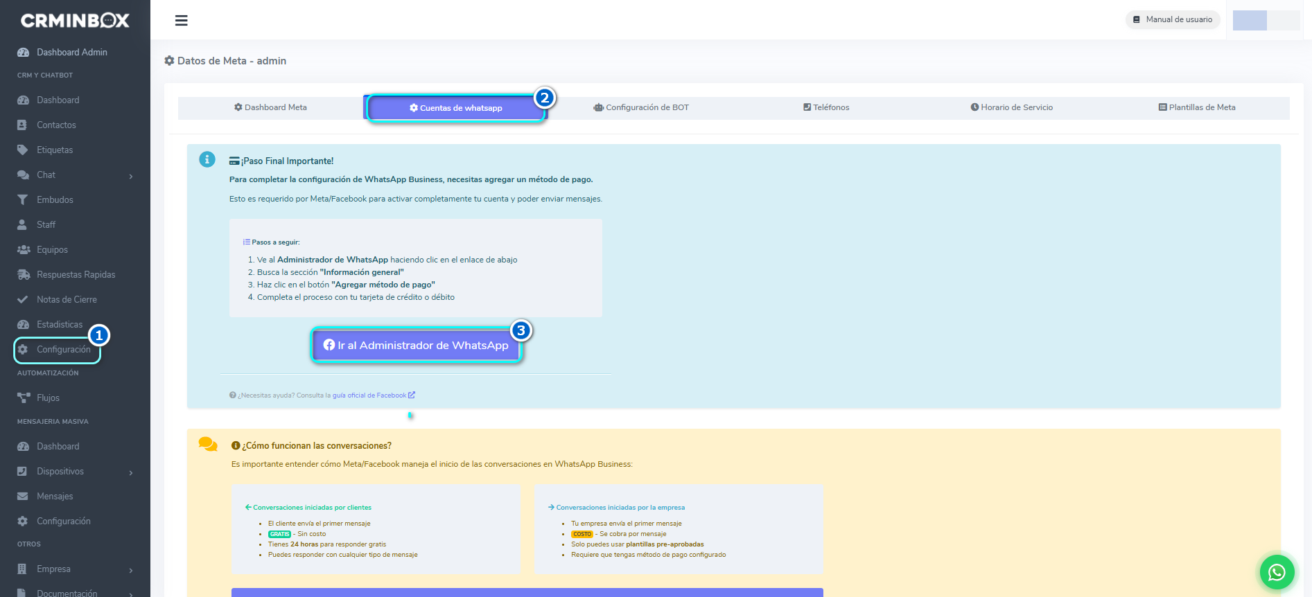 Activar el número de WhatsApp Business API dentro de CRMInbox.