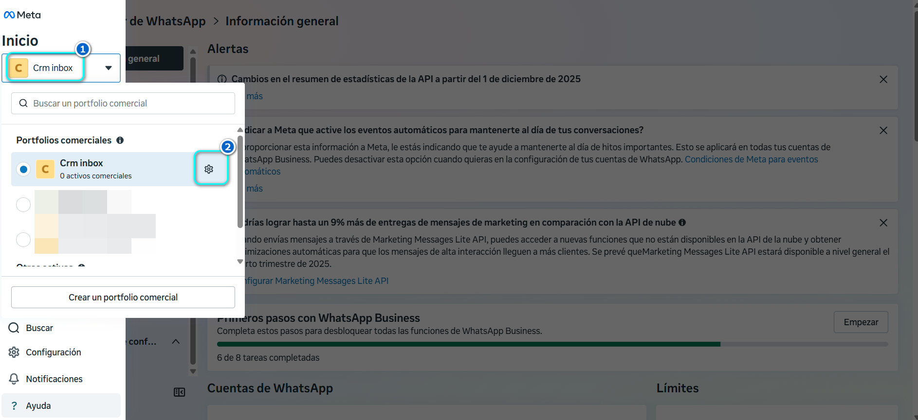 El Portafolio Comercial es la sección donde se valida la información legal y comercial de tu empresa ante Meta (Facebook y WhatsApp Business).